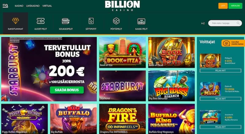 Tallettaminen onnistuu monilla tavoilla ja kotiutuksetkin ovat riittävän nopeita, kunhan vain valitsee oikein maksutavan. Billionin pelivalikoimasta löytyy kaikki kuumimmat trendit ja parhaat klassikot, vaikka pientä hiomisen varaakin vielä löytyisi.
