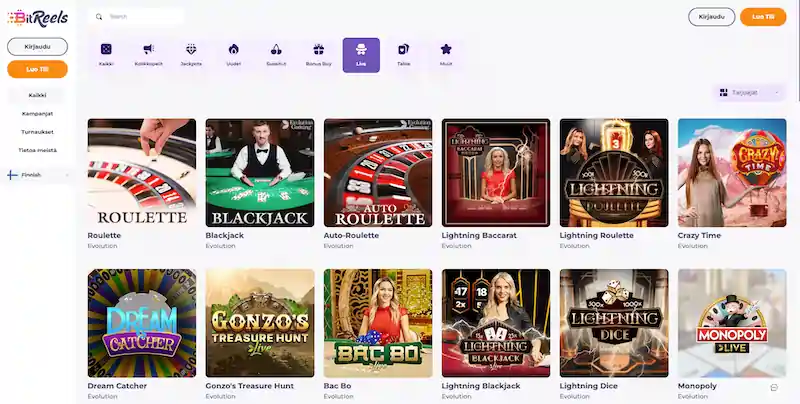 Edellisen luokan orastavan kompuroinnin jälkeen on kiihdytetty jälleen täyteen juoksuun, sillä livepelien tarjonta on aivan huippuluokkaa. Tuttuun tapaan valikoimasta vastaavat ne kaksi kovinta eli Evolution ja Pragmatic, jotka pitävät valtikkaa näiden pelien osalta tiukasti hallussaan.