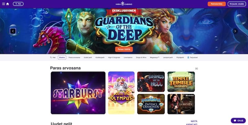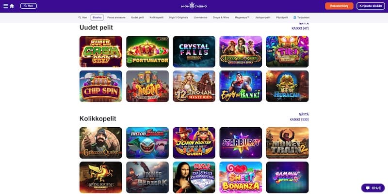 Pelikirjastosta voi löytää paljon High 5 omia luomuksia, joille on tarjolla myös täysin oma kategoria. Näitä pelejä on saatavilla kyllä muillakin casino-sivustoilla, mutta maailmanlaajuisten menestyjien lisäksi tarjolla on eksklusiivisia yksilöitä, joita ei vielä muilta sivustoilta löydy. Tarjolla on siis loistava tilaisuus päästä kokeilemaan jotakin erityistä ja ennennäkemätöntä.