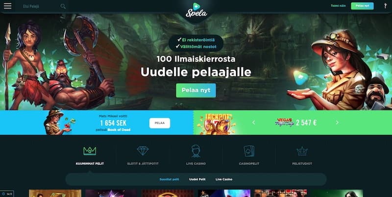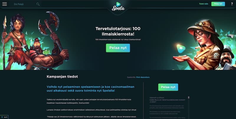 Huomion arvoisena nostona voidaan vielä todeta, että Spela tarjoaa uusille asiakkaille tervetuliaistarjousta. Tarjouksessa on jaossa ilmaiskieppejä, jotka pääsee lunastamaan itselleen minimitalletuksella. Tällainen tarjous ei ole arkipäivää kaikille tilivapaasti toimiville casino-luolille, joten mikäli edut yhdistettynä vaivattomaan pelaamisen kiinnostaa, kannattaa käydä tsekkaamassa tämä menomesta jo tänään!