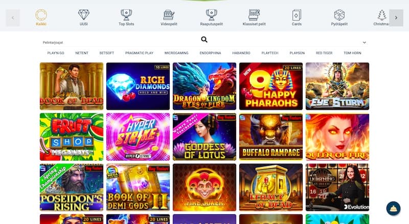 Pelaajat voivat nauttia monista tutuista kategorioista, kuten esimerkiksi jättipoteista, tavallisista kolikko-automaateista, ikonisista klassikoista, pöytäpeleistä tai vaikka raaputusarvoista. Näiden lisäksi teemoja ja ominaisuuksia löytyy ihan joka lähtöön, josta kertoo paljon myös erilaiset kategoriat, kuten “Christmas”, “Wild wild West” sekä “Egypt”.